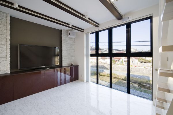 川沿いに臨む家
