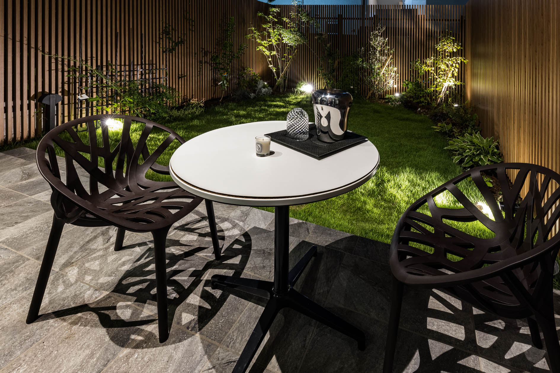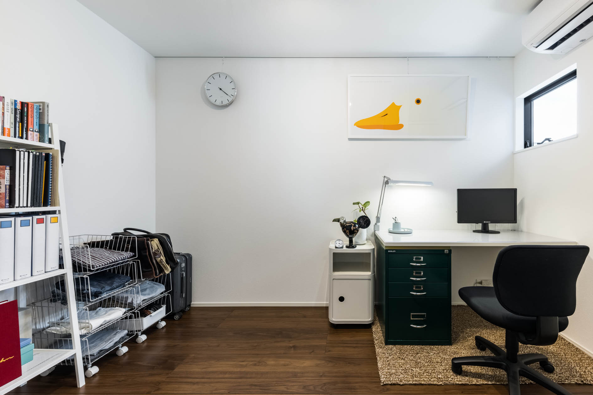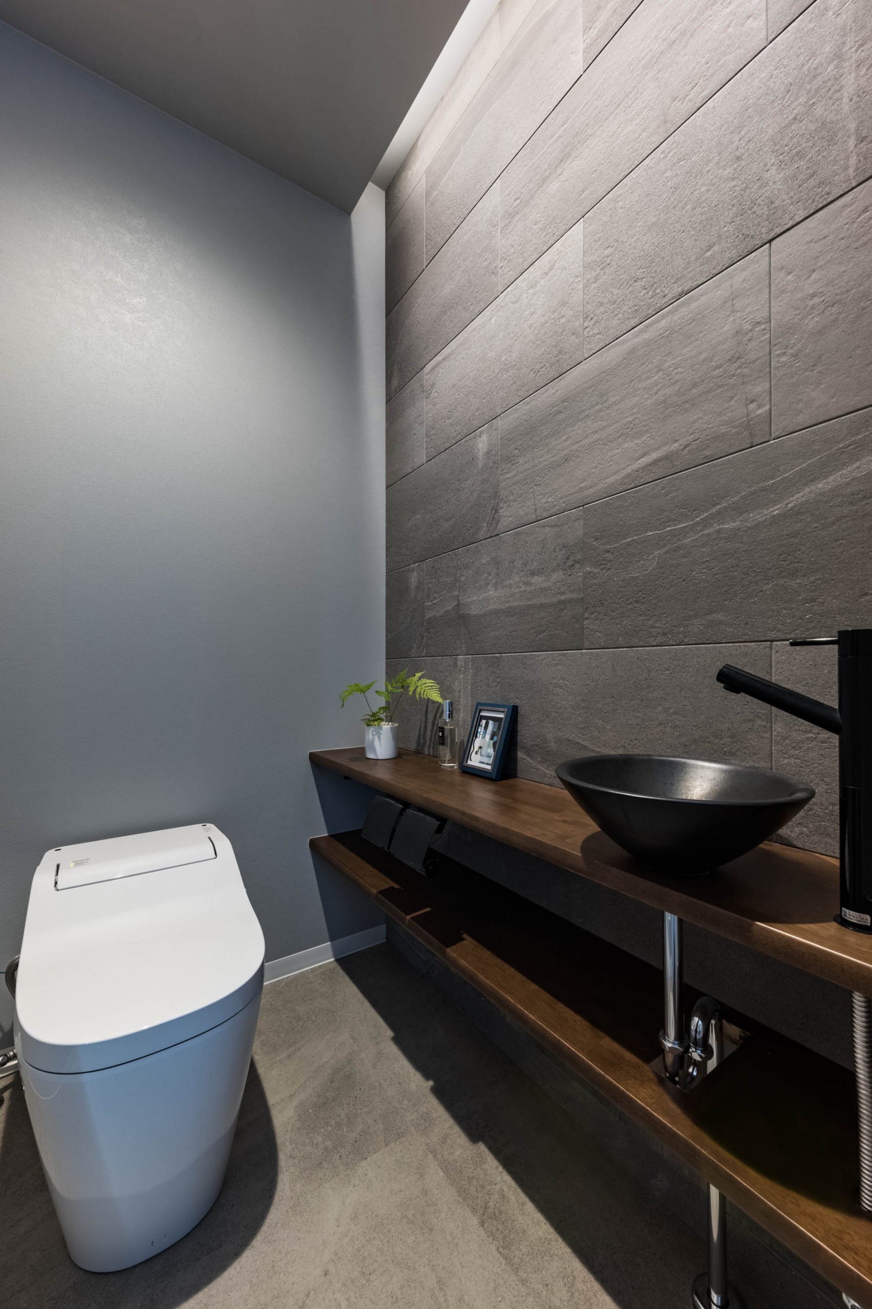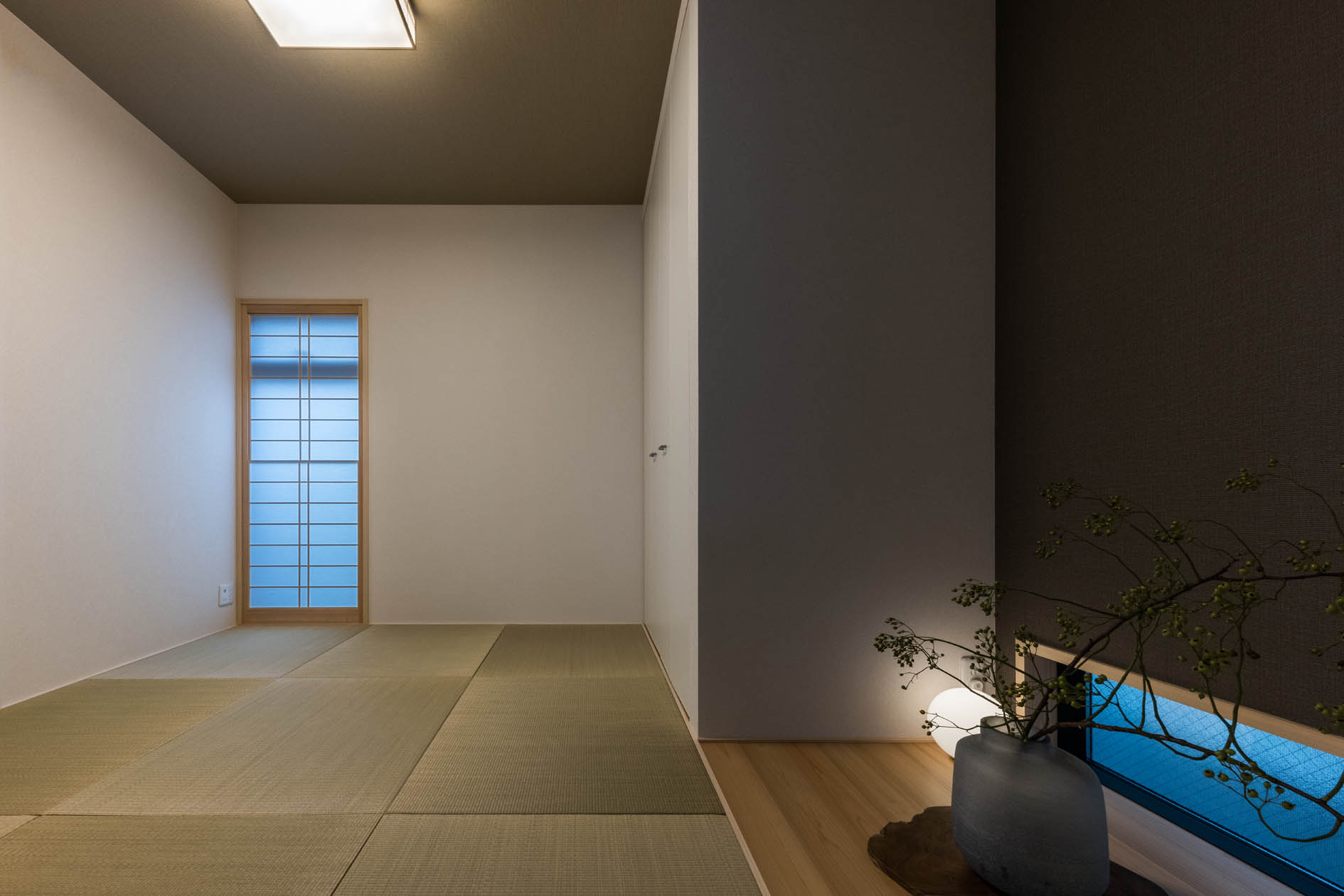 白い外壁メインでアクセントにグレーを使用した外観。白い外壁が汚れないようになるべく窓を設置しなくてもいいような間取りに。玄関とLDKの境界をガラスで間仕切ることによって、玄関の明るさを確保するとともに、抜け感・広がりも確保。加えて階段がアクセントとなり、余計なデザインを加えずとも、シンプルで洗練された空間に。LDKに入るとダイニングの吹き抜けにはお施主様こだわりのペンダントライトがお出迎え。また主役になるように配置を吟味したグランドピアノ。バーチカルブラインドの隙間から、まるで木漏れ日のような太陽光が降り注ぎ、素敵な演奏会を演出します。ダークにまとまった内装とアクセントのグレーのキッチンスペースと相まって、シックで落ち着きのある一邸に。
