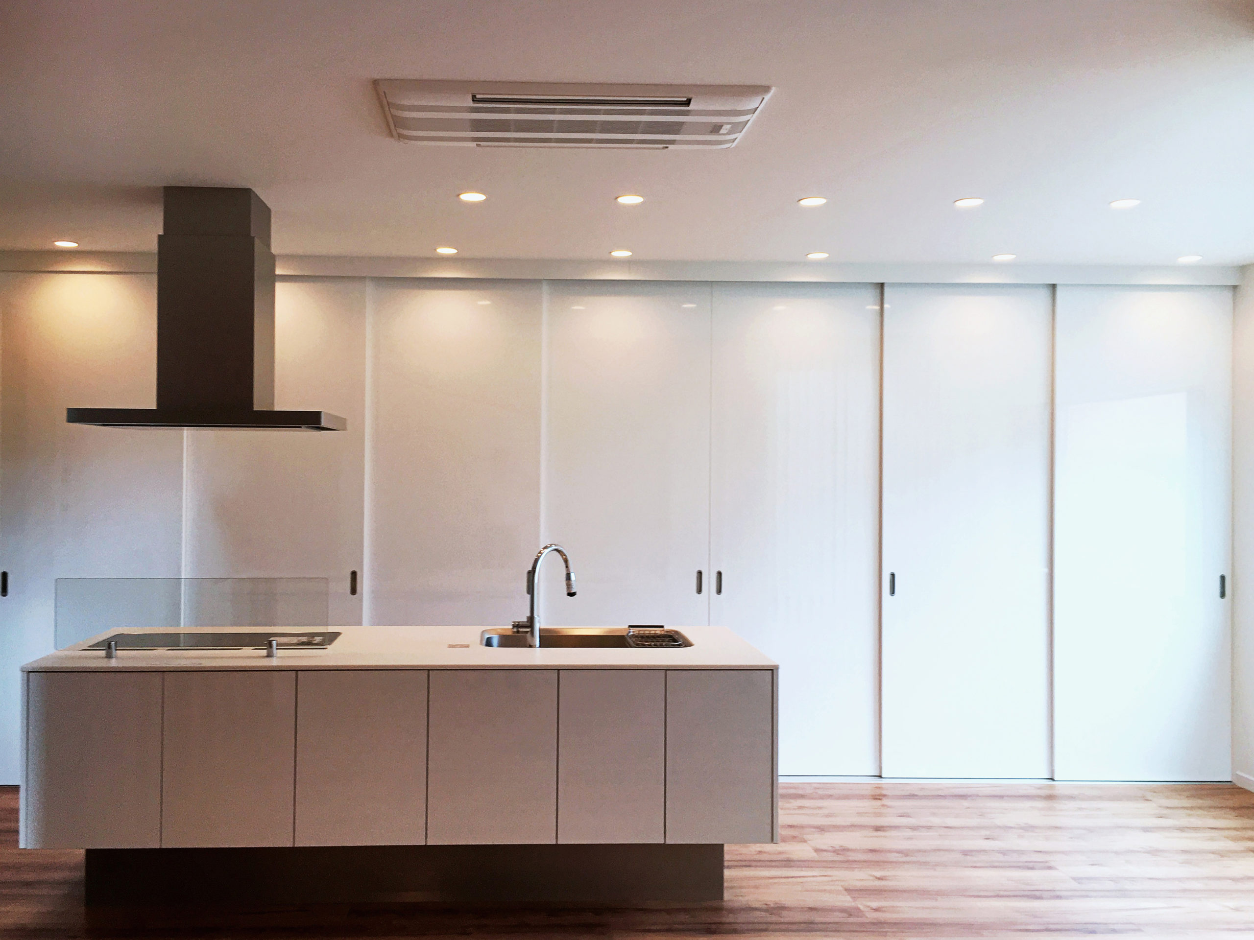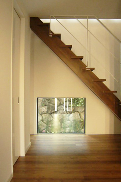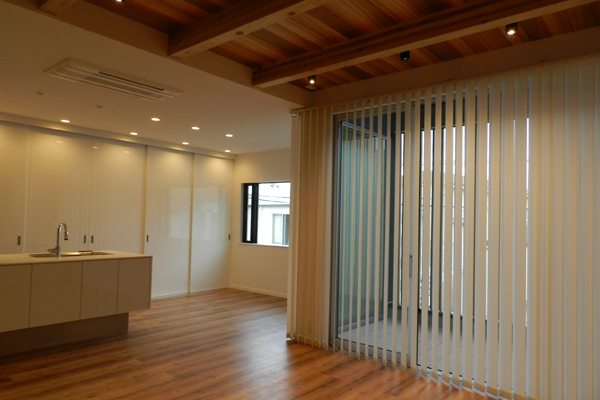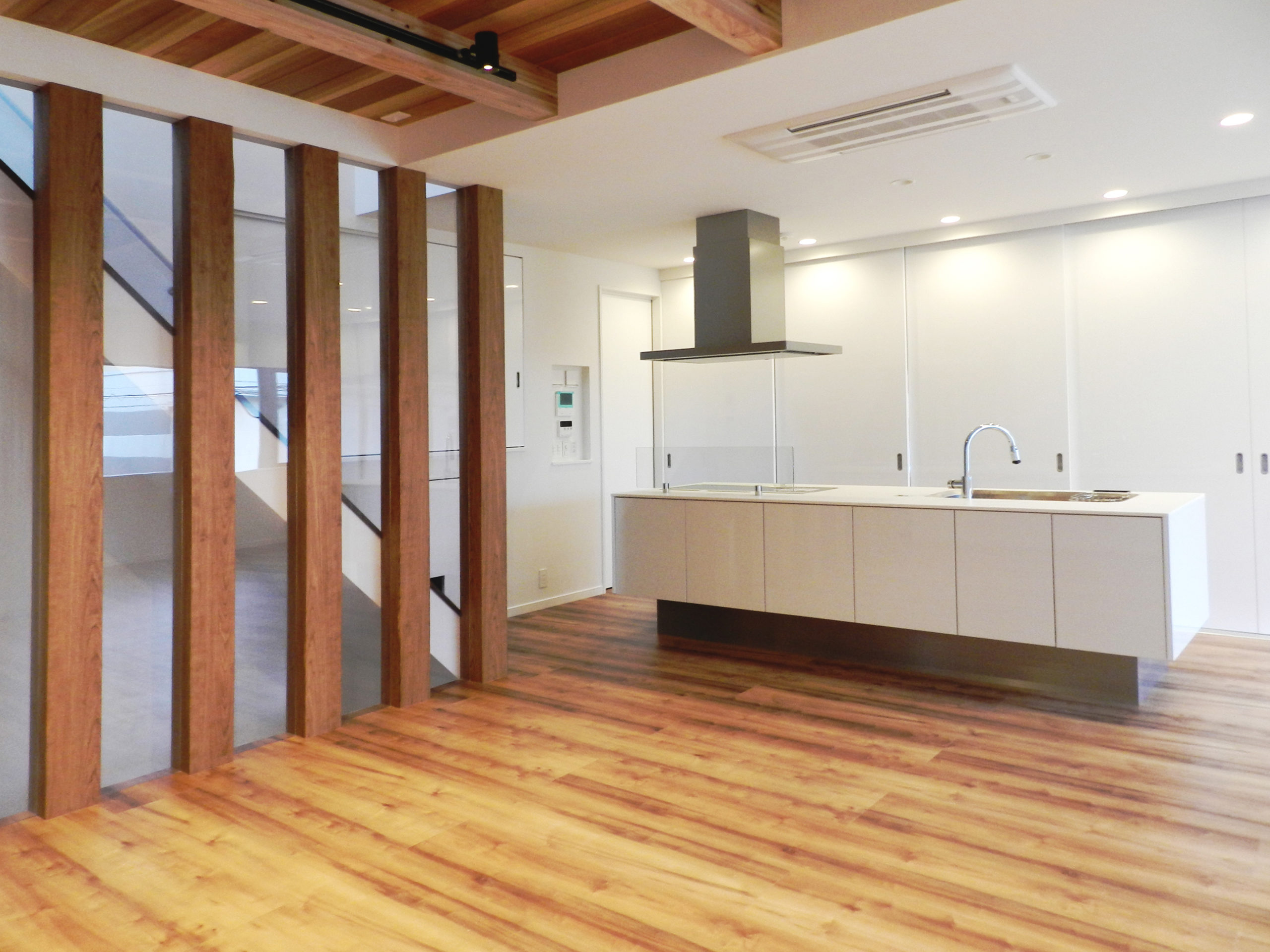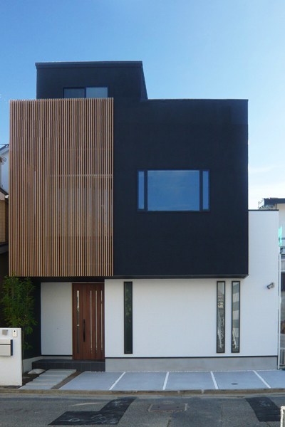 4つの“ハコ”で構成されたモノトーンを基調にしたファサードは、木の差し色がアクセントとなり、シンプルながらもメリハリの効いたデザインに。アクセントの木の差し色は、2階にあるLDKの目隠しと、愛猫の安全性を考慮した2つの機能を持っています。ともすれば相反するこの“デザイン性”と“機能性”ですが、住まい主の愛猫への想いと、デザインに対するこだわりが上手く融合され、デザインと機能が両立した、愛情溢れる住まいが出来ました。