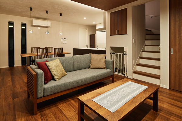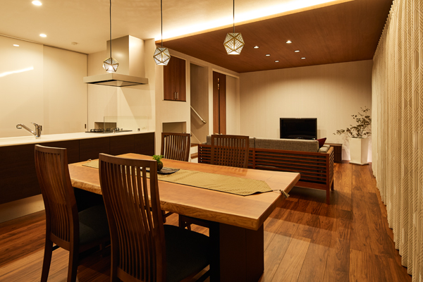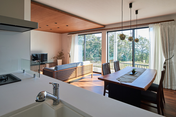 六甲山麓から続く木立の緑が借景となり、リビングに居ながらリゾート気分が味わえる贅沢な間取りに。
